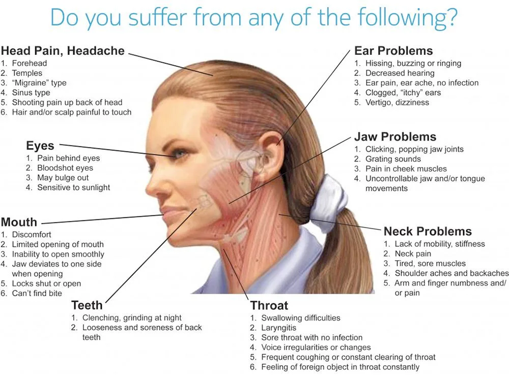 If you frequently experience headaches, migraines, stiff neck and shoulders, tingly fingers, and light-headedness that doctors of other medical fields cannot explain, these symptoms are possibly caused by a bad bite or TMJ dysfunction.